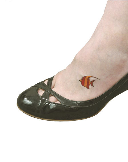 お洒落のワンポイントに!ミニサイズのペーパーTATTOOシール「熱帯魚3・赤」。