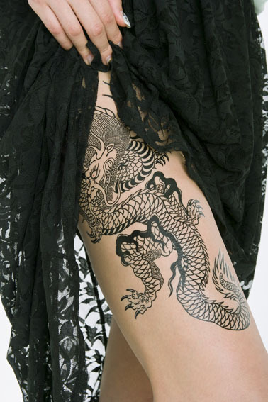 ビッグサイズでインパクト抜群!パーティーやイベントに大活躍のタトゥーシール「大型・線画黒龍」。