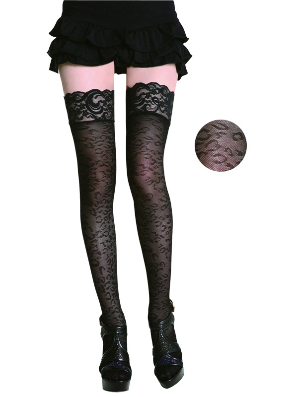 デザインにこだわった、レオパード×刺繍レースのガーターストッキング。ちょっぴり高級感漂う刺繍レースは、ガーターベルトとの相性バッチリ!甘辛ミックスで、足元をオシャレに演出するセクシーストッキングです。