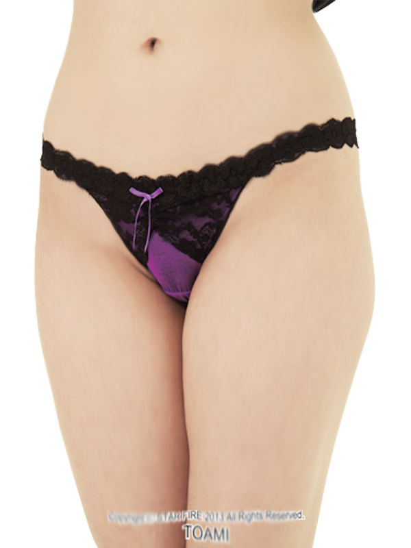 <EROX>パープル生地と黒レースの相性バツグン!色気を放つTバック仕様のセクシーショーツ。腰周りをストレッチレースで飾り、フロントにはリボンをトッピング!ちょっぴり小悪魔なイメージの大人のランジェリーです。