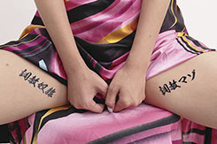 卑猥な言葉にドッキドキ!自身や恋人の肌に貼って楽しむ「調教奴隷」文字のタトゥーシールです。