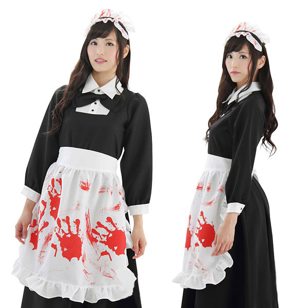 うそっ、血まみれ…?!赤い手形がベッタリついたホラーテイストのメイド服。