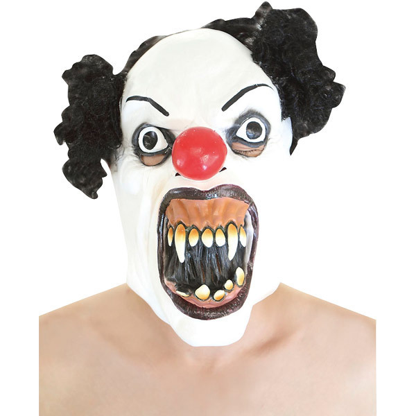 ●お面タイプのリアルなマスク●今にも噛み付きそうな牙むき出しのピエロ●内側から見える穴開き仕様。