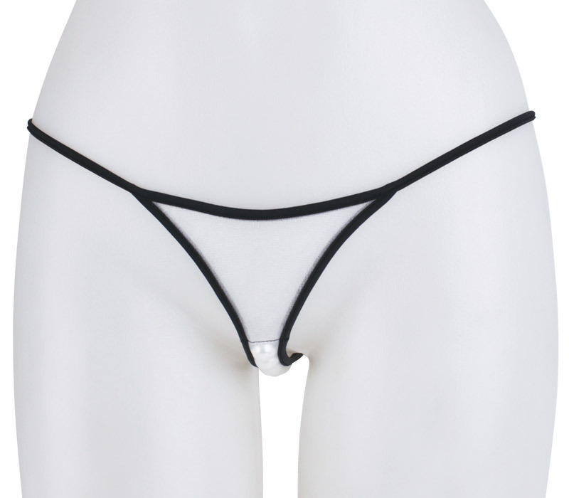 ●ホワイトメッシュ素材●ショーツ全体を細めの黒ストリングで縁取り●クロッチにパール入り●後ろはセクシーなTバック仕様●日本製。