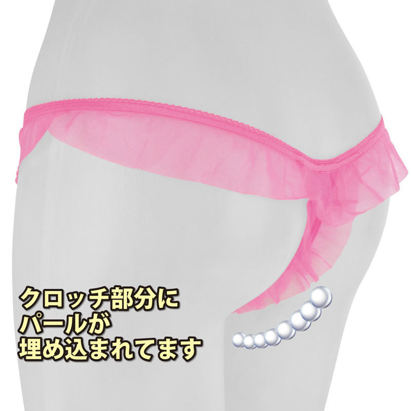 リボンやフリルといった愛らしいデザインとは裏腹に、連なるパールビーズを配したちょっぴり刺激的なランジェリー!フロントホックで着脱できたりと、遊び心がたっぷり詰まった大人のショーツです。