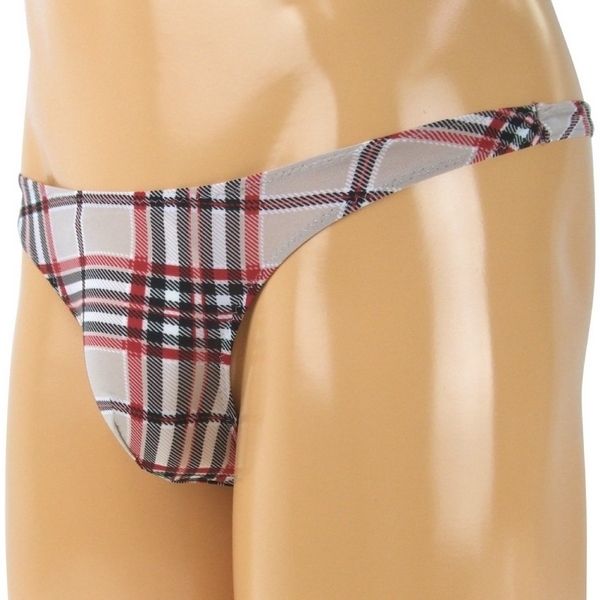タイトにフィットする男性用ランジェリー!セクシーなTバックスタイルでもチェック柄プリントならカジュアルに着こなせます。