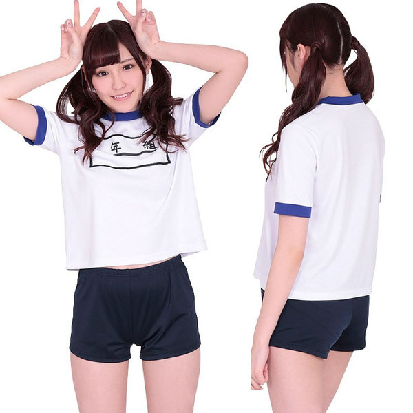 リアルなゼッケン付き!紺×白Tシャツのスタンダードな体操服コスプレセット。