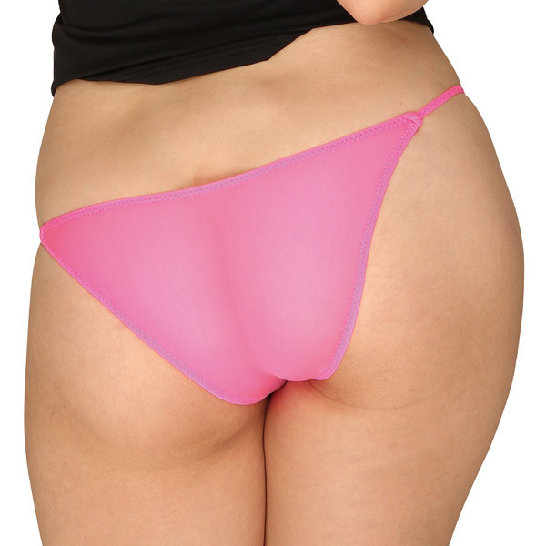 サラリとした心地よい肌触りのピンクシースルー生地を使用したレディースハーフバックショーツ。