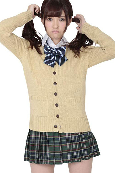ホワイトカラーのブラウスに、COOLなベージュカラーカーデと落ち着いたグリーンカラーのチェック柄プリーツスカートがとっても可愛い制服コスチューム!ブルーカラーのストライプ柄リボンも付いた、これ1つでトータルコーデバッチリな4点セット。