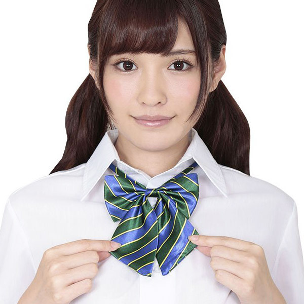 トップページ > 小道具(ニーソックス・猫耳) > きゅん可愛スクールリボン ブルー&グリーンストライプ