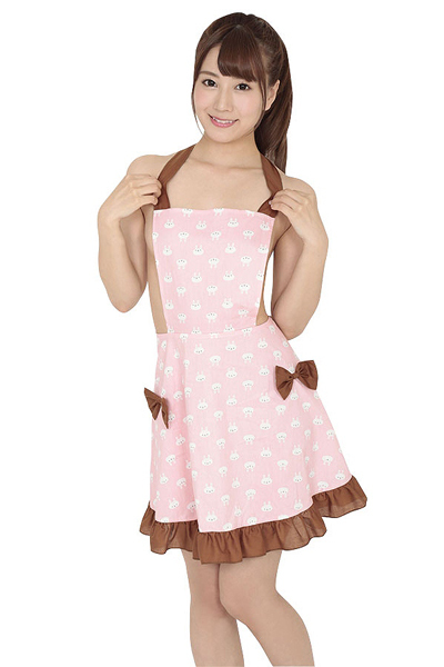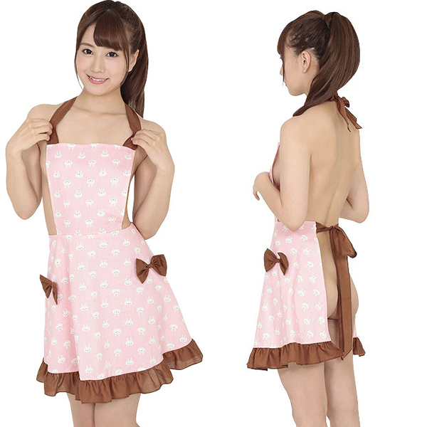 ウサギのイラストが描かれたフリルたっぷりの可愛いエプロンコスチューム。