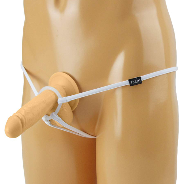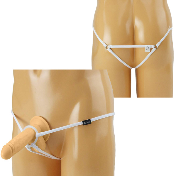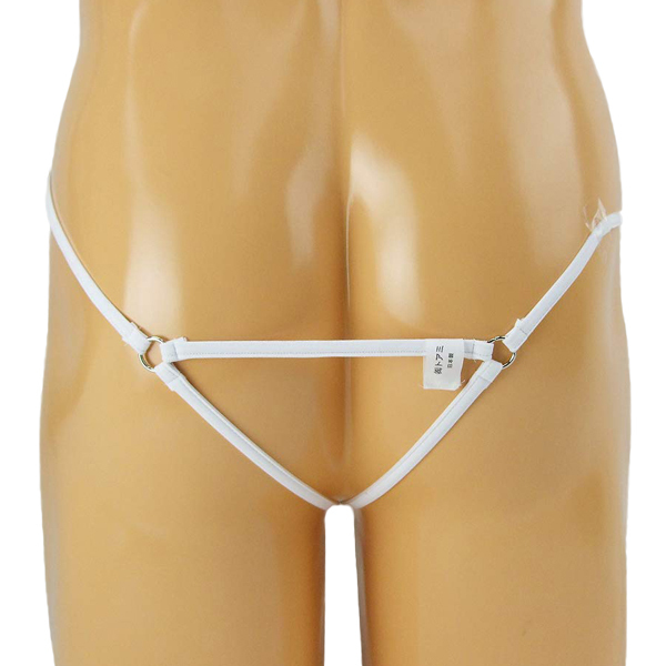 男のシンボルを飾るシリコンリング付メンズ用ストリングショーツ(白)。