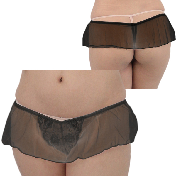 トップページ > ショーツ > レディス シースルースカート付きレース刺繍Tバック ブラック