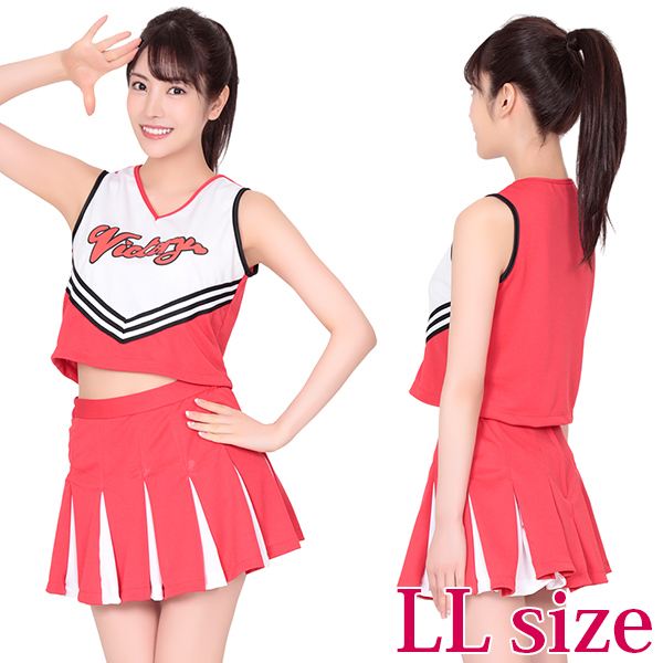 勝利へ導く可愛いチアに変身!大人気ロングセラーのチアガール衣装に大きめサイズが登場しました♪胸元には大きく「VICTORY」の文字をプリント!情熱的な赤が青空に映えるチアガールコスプレ。