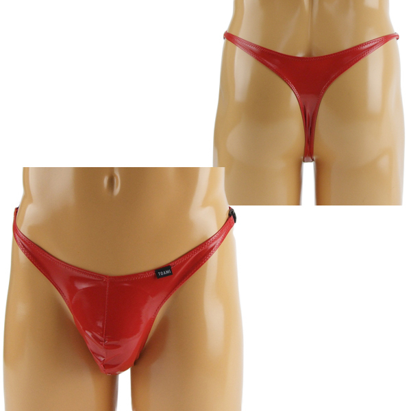 トップページ > メンズ ショーツ・ビキニ > メンズ エナメル両サイドワンタッチバックル付きTバック レッド