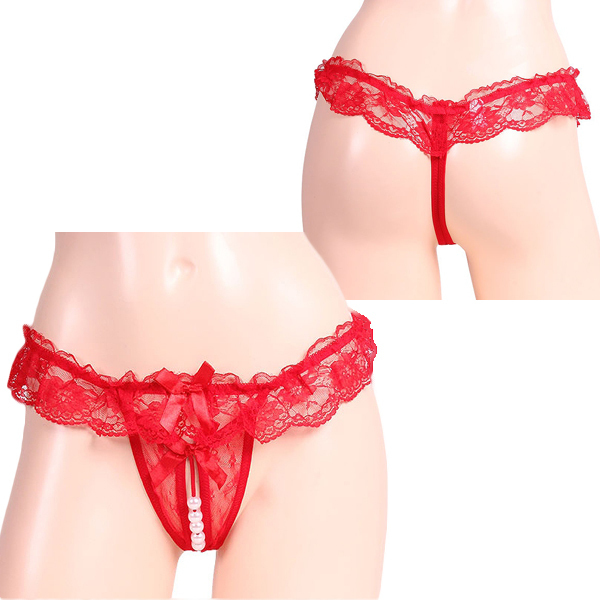 トップページ > オープン ブラ・ショーツ(穴あき) > キュンキュンうずく大粒パールオープンショーツ レッド