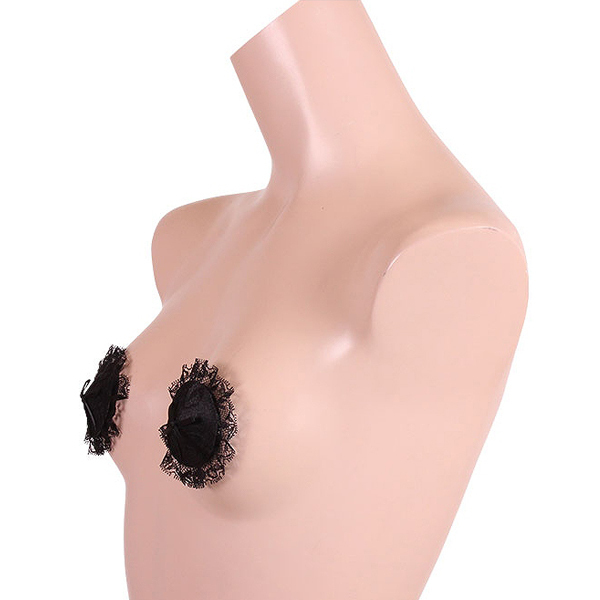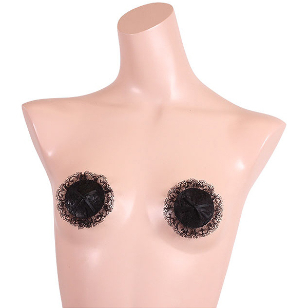 レースデザインでバストトップをエレガントに飾る黒の女性用ニップレス。