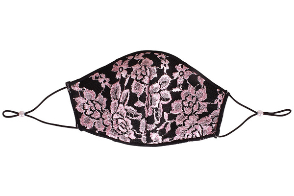 黒地にピンクの薔薇刺繍が可愛い柔らかな大人用レースメッシュマスク。