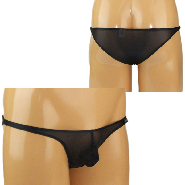 黒の極薄生地で男の色気を際立たせるメンズ用シースルーハーフバック(黒)。