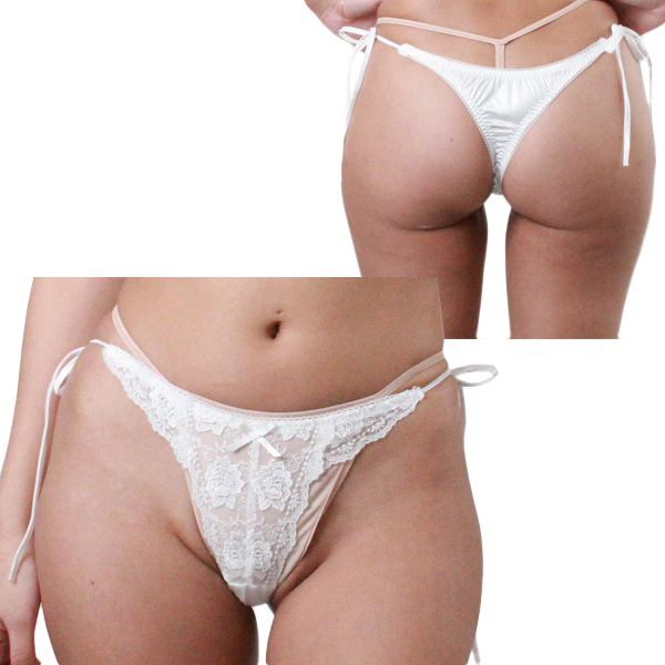 トップページ > ショーツ > 光沢生地にレース付き脇ヒモTバック Lサイズ ホワイト