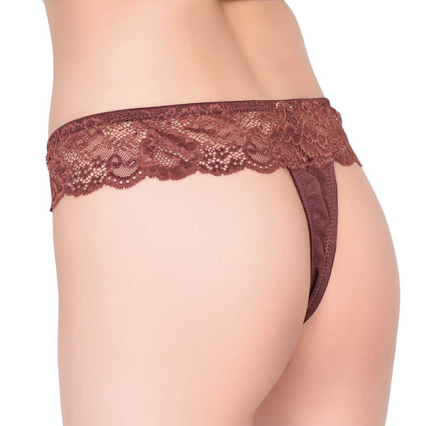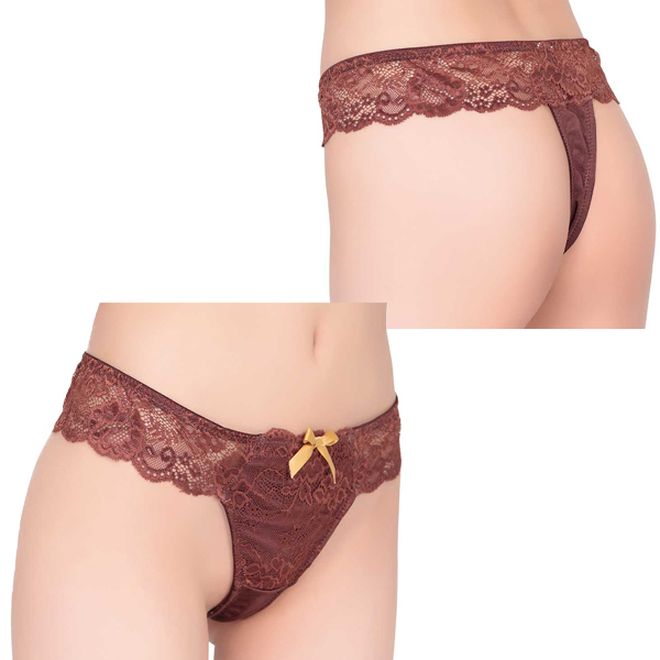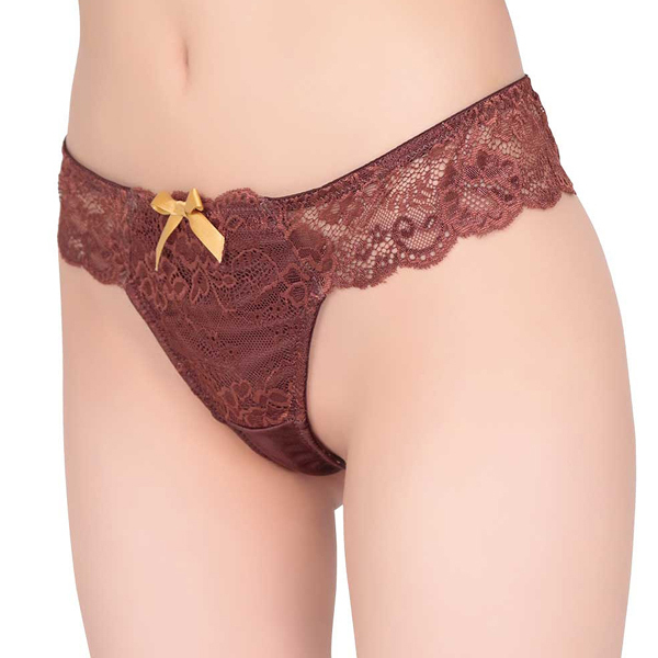 ウエストのレースラインがステキなチョコの香りがついたショーツ!贈り物に最適なチョコレートの香り付きTバック。フロントとウエスト部分にブラウンの豪華なストレッチレースをあしらい高級感を演出。フロントのゴールドリボンがゴージャス感アップ!