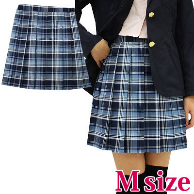 女子高生コスプレの定番アイテム!爽やかブルーのチェック柄プリーツスカート。
