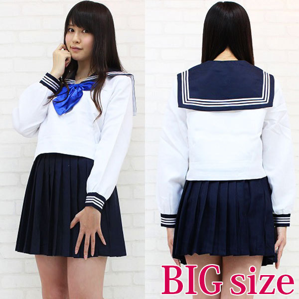 青いリボンが爽やか!春・秋仕様のキュートなセーラー服コスプレ。