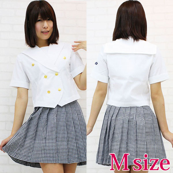 上着にはピケ生地や金ボタンを使用し、高級感のある仕上がりに!黒ギンガムチェックが可愛らしいスカートは、アジャスター付き!憧れのお嬢様になれちゃう制服コスチュームです。