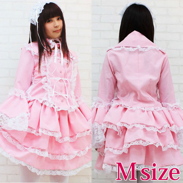 たっぷりのフリフリレースでボリューム感を持たせた、ピンクのチュールメイド服(M)。