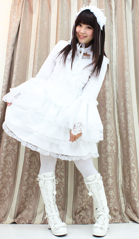たっぷりのフリフリレースでボリューム感を持たせた、真っ白なチュールメイド服(BIG)。