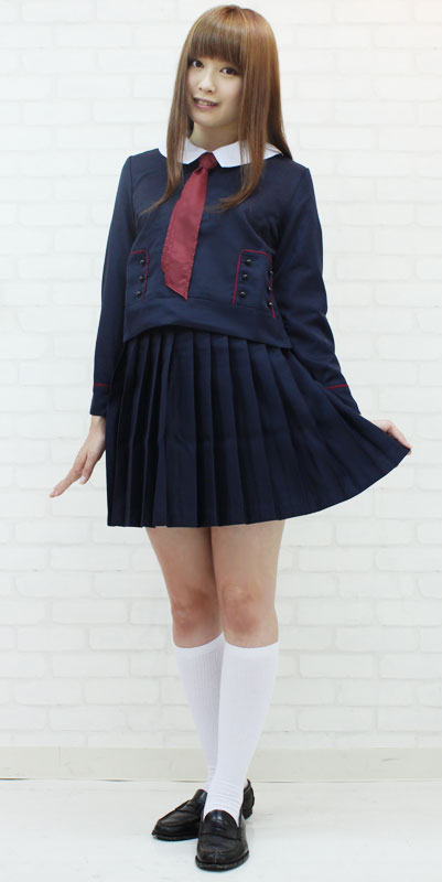 白襟とエンジ色のスカーフがベストマッチ!可愛い濃紺の制服コスプレセットです。
