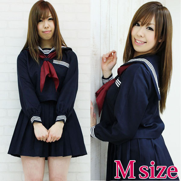 コスプレ衣装の王道!シンプルなのにとっても可愛い紺色の長袖セーラー服。