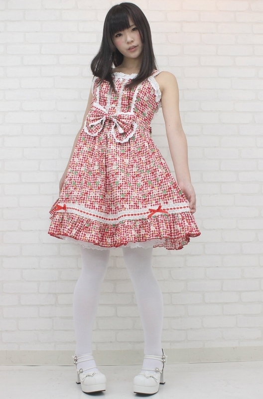 真っ赤なチェリー&ベリーでキュートに仕上げた、ギンガムチェックのジャンパースカート(BIG)。