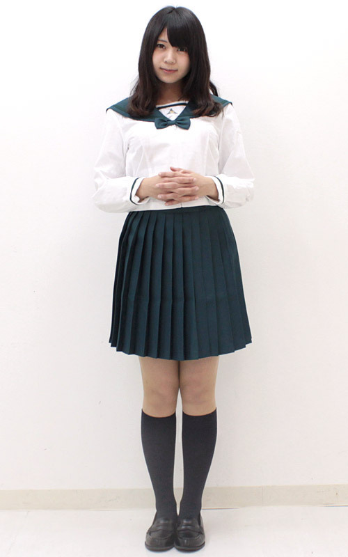 深く濃いグリーンが珍しくて人気!本物そっくりに仕上がった長袖セーラー服のコスチューム。