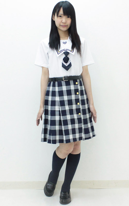 セーラー服より大人っぽい!大きな襟の上着と白黒チェックの巻きスカートが爽やかなコスチューム。