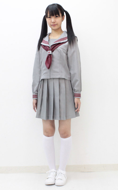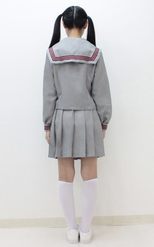 ちょっぴり珍しいグレーカラーで個性をプラス!冬服仕様の長袖セーラー服コスチューム(Mサイズ)。