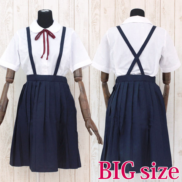 - BIGサイズ:B85〜112cm・W76〜91cm 上衣:着丈69cm・袖丈27cm・肩幅45cm スカート:着丈61cm・吊り紐88cm(1本) セット内容:上衣シャツ、吊りスカート(三段ホック)、紐タイ 素材:上衣シャツ(ポリエステル65%綿35%)、スカート(ポリエステル100%)