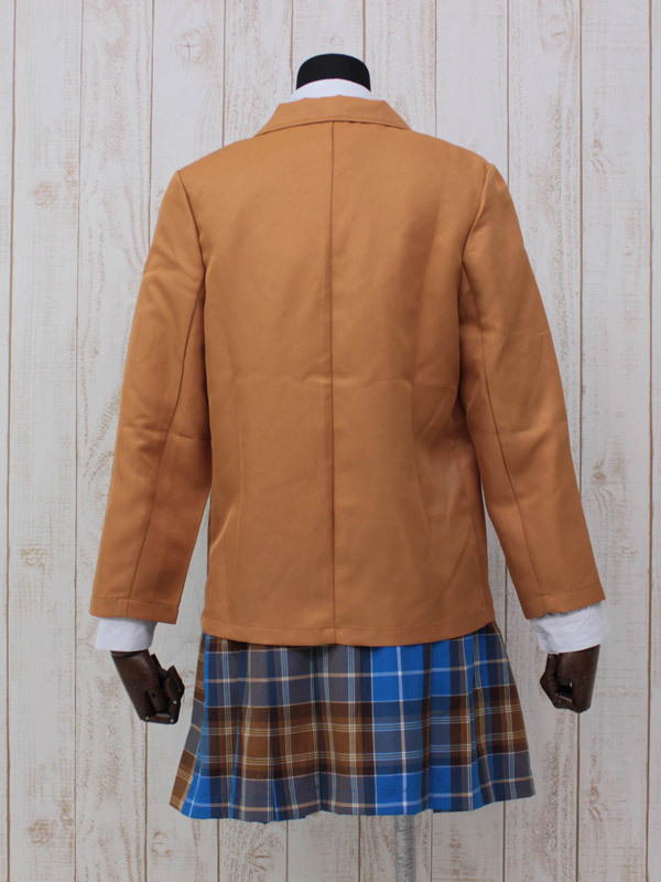 キャメル色ブレザーと青チェックスカートがクラシカルな冬服タイプの制服コスチューム。