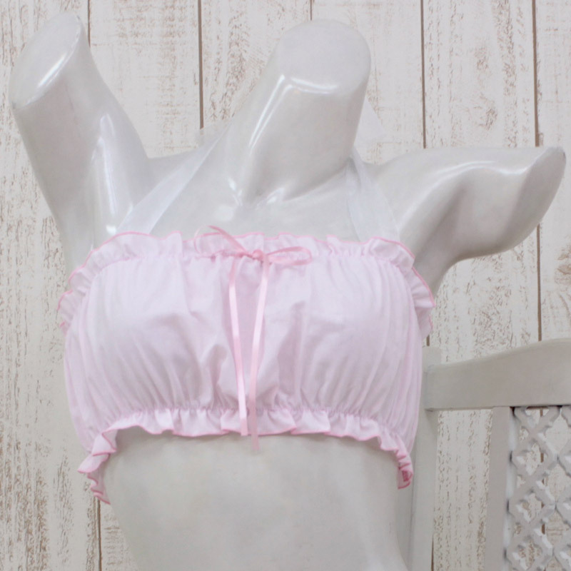 ●ストレッチゴムでギャザー寄せ・くしゅくしゅ感がラブリー●肩紐を隠せばセクシーなチューブブラに・結んでホルターにするとずり落ちません●フリル部分はしっかり縁処理済み。