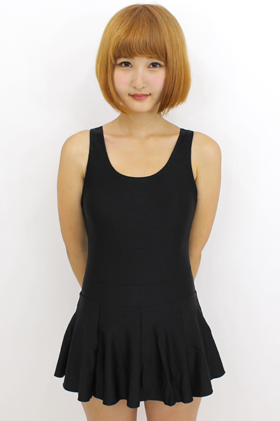 萌え系衣装は個性で勝負!可愛いスカート付きのブラックスクール水着。