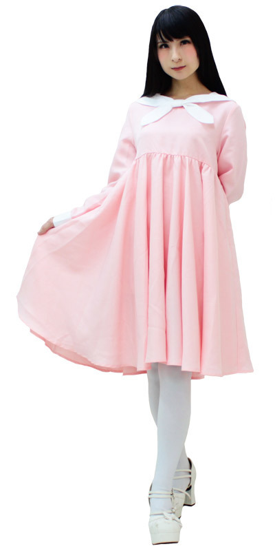 ふんわりフレアに広がるロング丈のワンピースを、セーラー襟で制服風にアレンジした可愛らしいコスプレ衣装です。