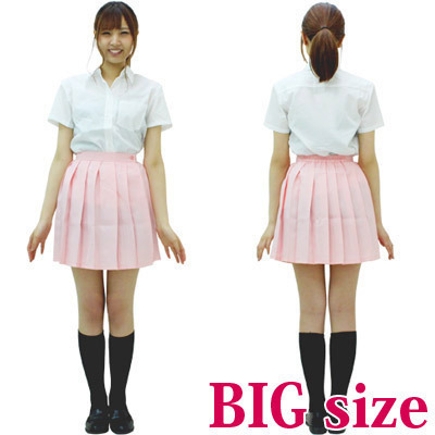 優しいパステルピンクがキュート♪女子校生の定番、制服コスプレには欠かせない無地プリーツスカート(BIGサイズ)。