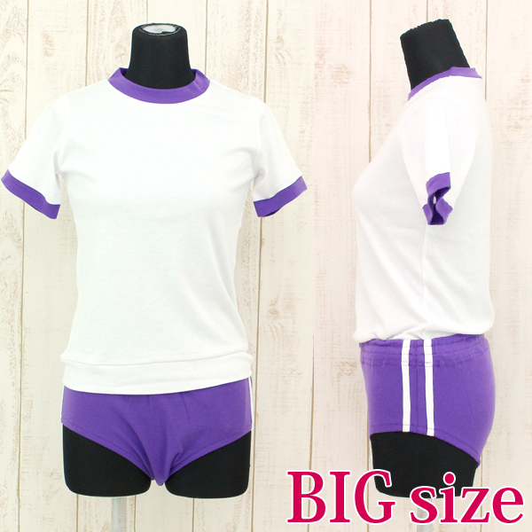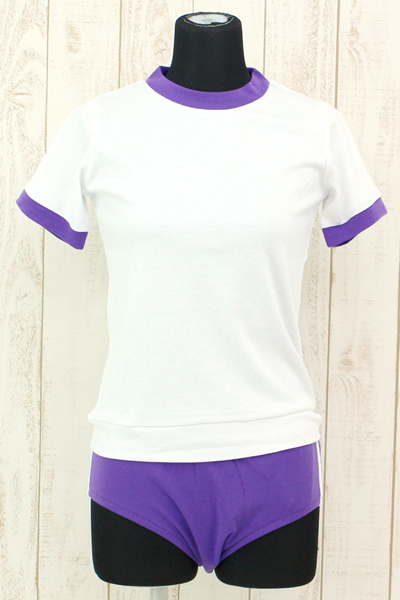 濃いめの紫カラーのブルマに本格的な二本ラインを施した可愛い体操着コスプレ。