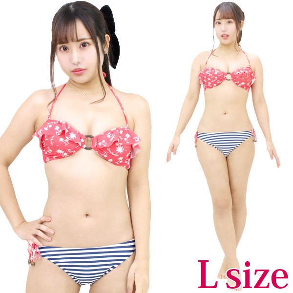 海やプール、水遊びで着たい!夏気分を盛り上げるマリン柄ビキニ水着2点セット(赤)。