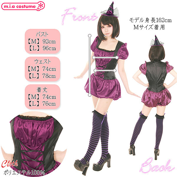 ハロウィンパーティにもってこい♪ダークポップに仕上げた可愛い魔女コスプレ大きめサイズ。