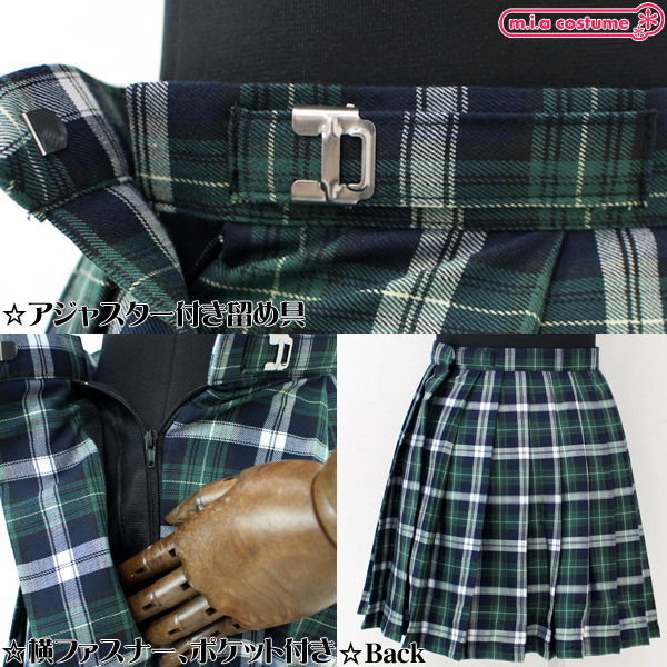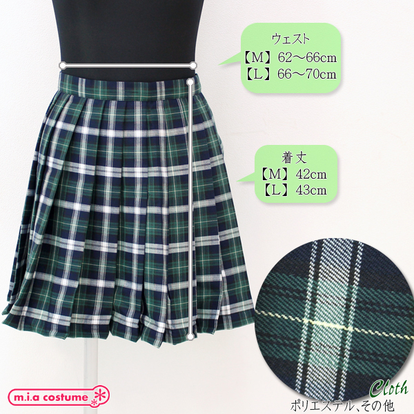 トップページ > 小道具(ニーソックス・猫耳) > ポケット付きのチェック柄プリーツスカート単品 緑×白 Lサイズ
