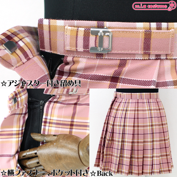トップページ > 小道具(ニーソックス・猫耳) > ポケット付きのチェック柄プリーツスカート単品 ピンク×キャメル Mサイズ
