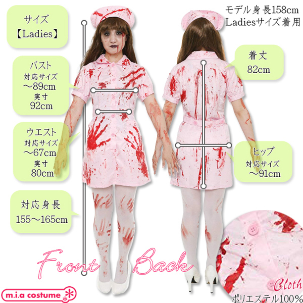 ハロウィン大人気のゾンビなナースになりきろう♪ワンピース、ナースキャップ、血糊がセットになった3点セット。