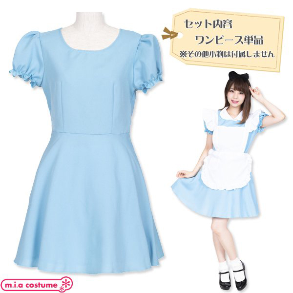 着丈85cm、身長155〜165cmに対応◎付襟やボーダーニーハイ、「おかえりダーリンエプロン(cm0341)」と組み合わせればアリス風コスプレも楽しめます。