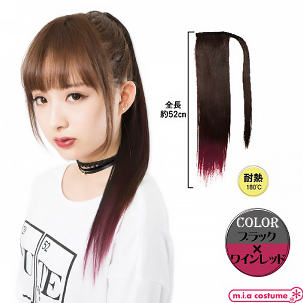 二つ使えばツインテールにもアレンジ可能!地毛に馴染みやすいサラサラの毛質だから違和感なくお使いいただけます♪発色の良いブラック×ワインレッドのカラーリングはライブなどのイベントにもおススメ。